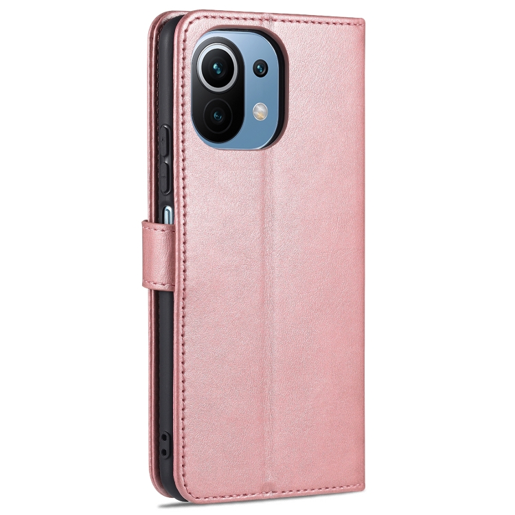 Para Xiaomi MI 11 LITE AZNS Siente la piel de la piel de la piel de la carne de cuero Horizontal Flip Funda con ranuras y soporte para tarjetas y billetera (oro rosa)