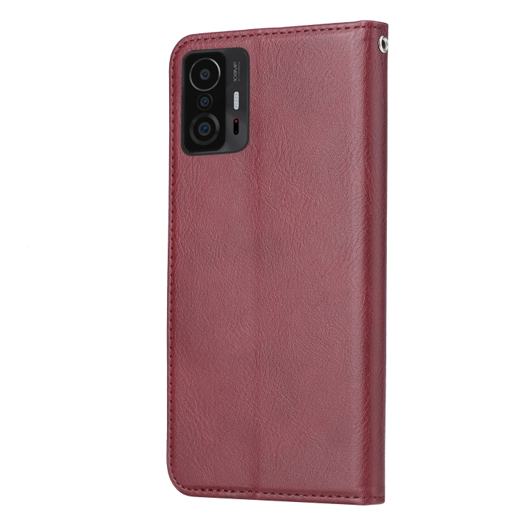 Para Xiaomi Mi 11T / 11T Pro Skead Skin Texture Horizontal Flip Funda de Cuero con Marco y Soporte de Fotos y Tragamonedas y Billetera (Vino Rojo)