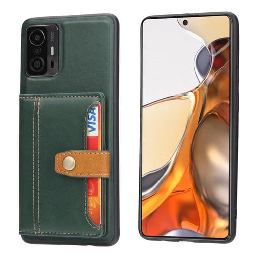 Para Xiaomi Mi 11T / Mi 11T Pro Calfskin Color Aproxible TPU + Funda de Pu con Soporte y Ranura para Tarjeta (Verde)