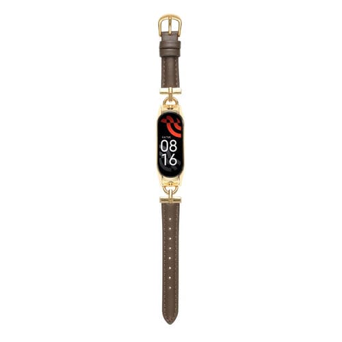Correa para Xiaomi Mi Band 3/4 Acero Forma de D con Cuero Genuino (Oro Dark Brown)
