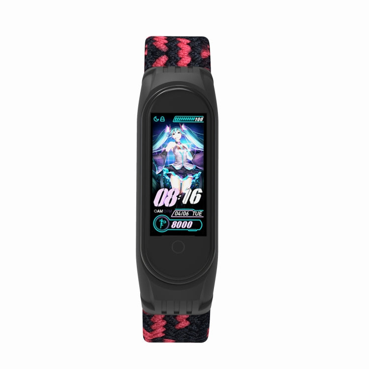 Para Xiaomi Mi Band 5/4/3 / Huami Single Lap Hyarn + TPU Strap Band, Tamaño: L (negro + rojo)