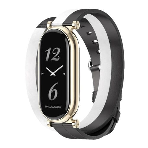 Correa de Cuero Doble Bucle para Xiaomi Mi Band 8 Mijobs Gt4 (Negro Blanco Dorado Claro)