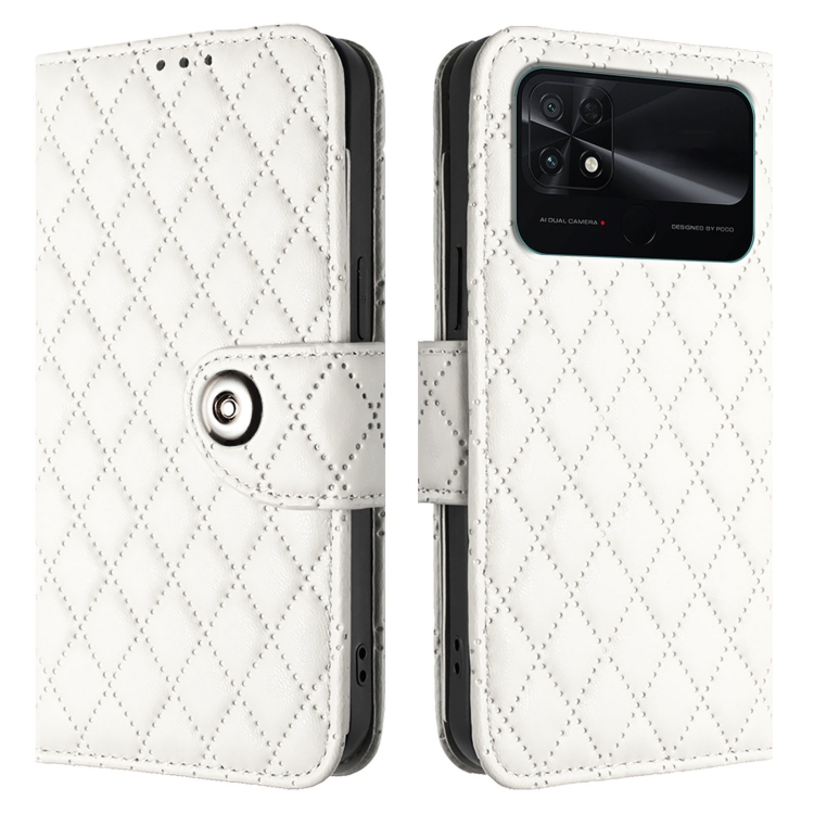 Para Xiaomi Poco C40 Funda para Teléfono de Cuero con Tapa con Textura Rómbica y Cordón (Blanco)