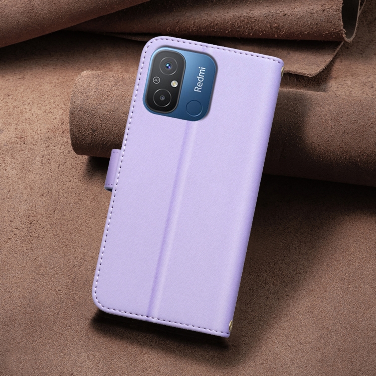 Para Xiaomi Poco C55 / Redmi 12C Funda de Cuero para Teléfono con Textura Cuadrada (Púrpura)