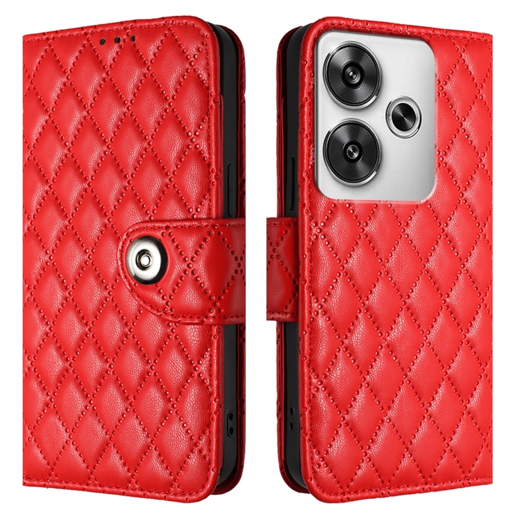 Para Xiaomi Poco F6 5G Funda de Teléfono con Tapa de Cuero con Textura Romboidal y Cordón (Rojo)