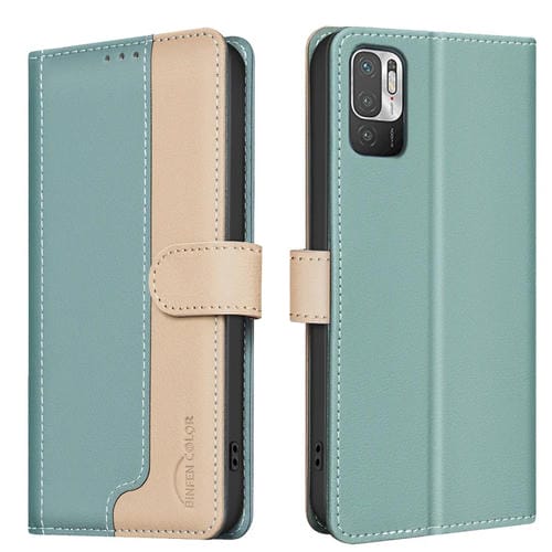 Para Xiaomi Poco M3 Pro / Redmi Note 10 5G Funda de Cuero Antirrobo Rfid a Juego de Colores (Verde)