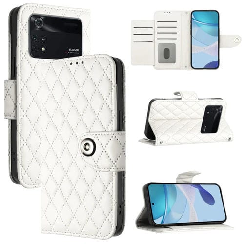 Para Xiaomi Poco M4 Pro 4G Funda de Cuero con Tapa con Textura Romboidal y Cordón (Blanco)