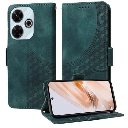Para Xiaomi Poco M6 4G Funda de Teléfono de Cuero Estrellado con Rombos En Relieve (Verde)