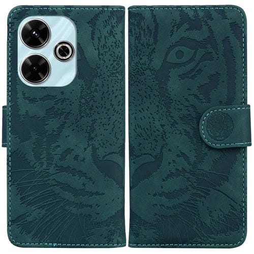 Para Xiaomi Poco M6 4G Tiger Embossed Pattern Funda de Cuero con Tapa para Teléfono (Verde)