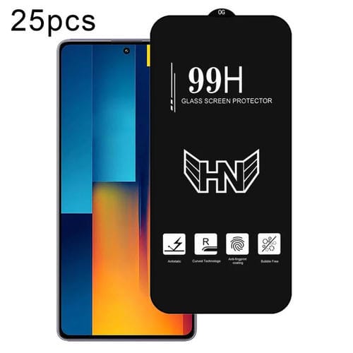 Para Xiaomi Poco M6 Pro 4G 25 Piezas de Película de Vidrio Templado de Pantalla Completa de Arco Grande de Aluminio Alto