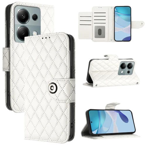 Para Xiaomi Poco M6 Pro 4G Funda de Cuero con Tapa con Textura Romboidal y Cordón (Blanco)