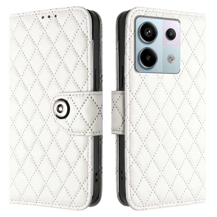 Para Xiaomi Poco X6 Funda para Teléfono de Cuero con Tapa con Textura Rómbica y Cordón (Blanco)