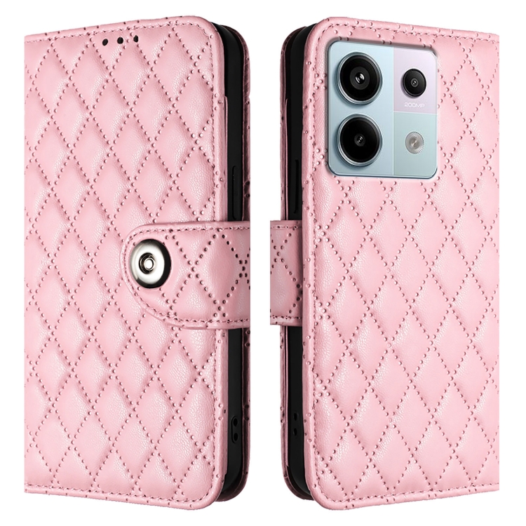 Para Xiaomi Poco X6 Funda para Teléfono de Cuero con Tapa con Textura Rómbica y Cordón (Rosa)