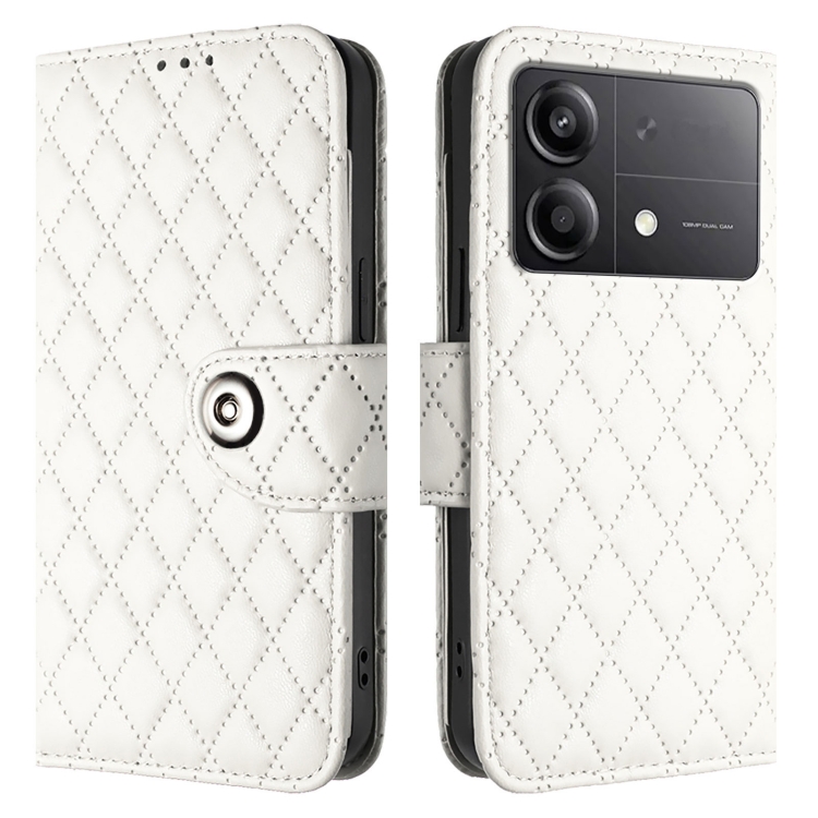 Para Xiaomi Poco X6 Neo Funda de Teléfono con Tapa de Cuero con Textura Rómbica y Cordón (Blanco)