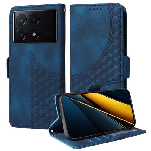 Para Xiaomi Poco X6 Pro Funda de Teléfono de Cuero Estrellado con Rombos En Relieve (Azul)