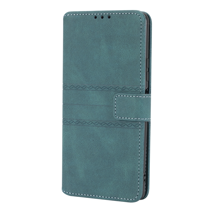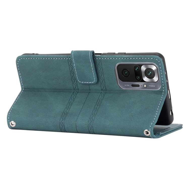 Para Xiaomi Redmi Note 10 Pro Max Hebilla Magnética de Rayas En Relieve Pu + TPU Funda de Cuero de Flip Horizontal con Soporte y Ranura para Tarjeta y Billetera y Marco de Fotos y Sling (Verde)