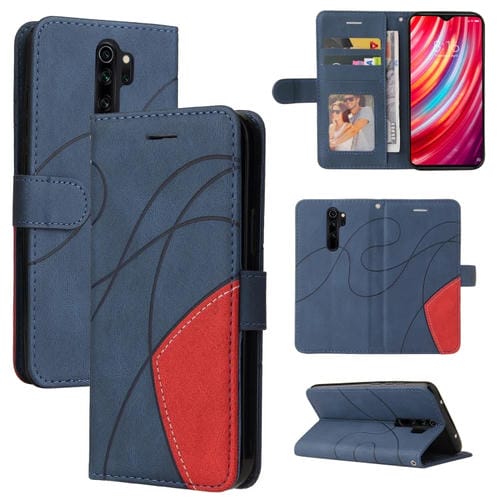 Para Xiaomi Redmi Note 8 Pro Dual-Color Splicing Horizontal Flip Pu Funda de Cuero con Soporte y Ranuras para Tarjetas y Billetera (Azul)
