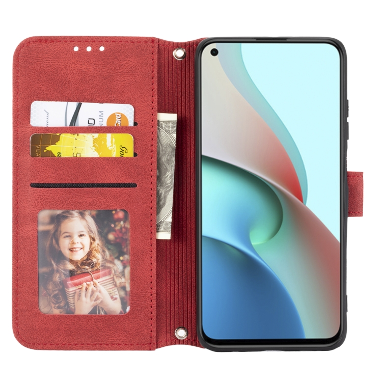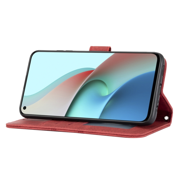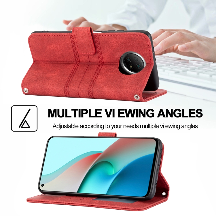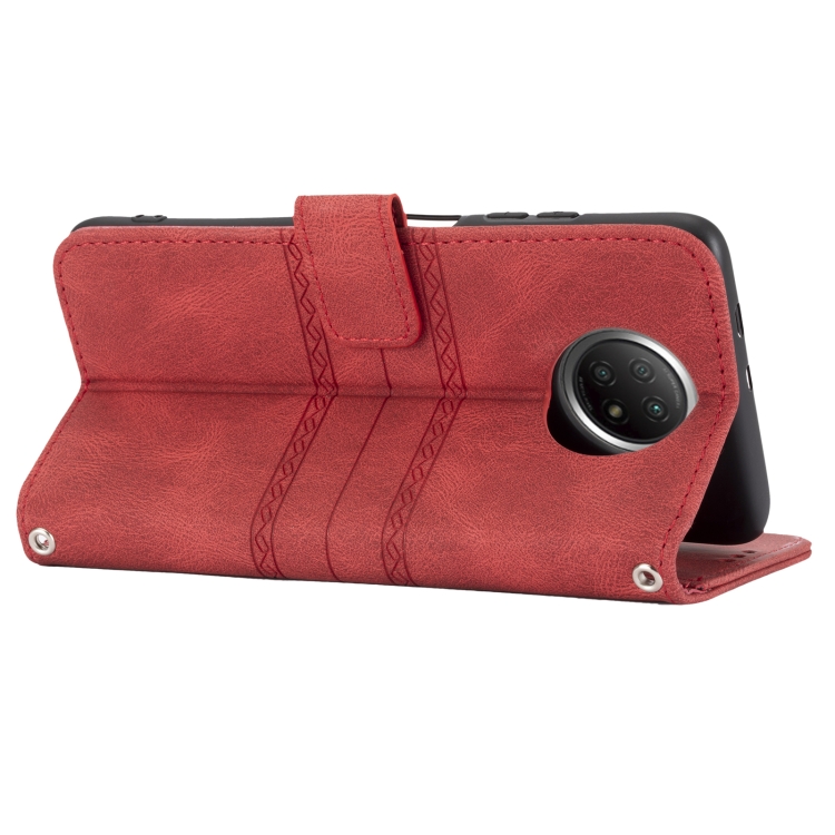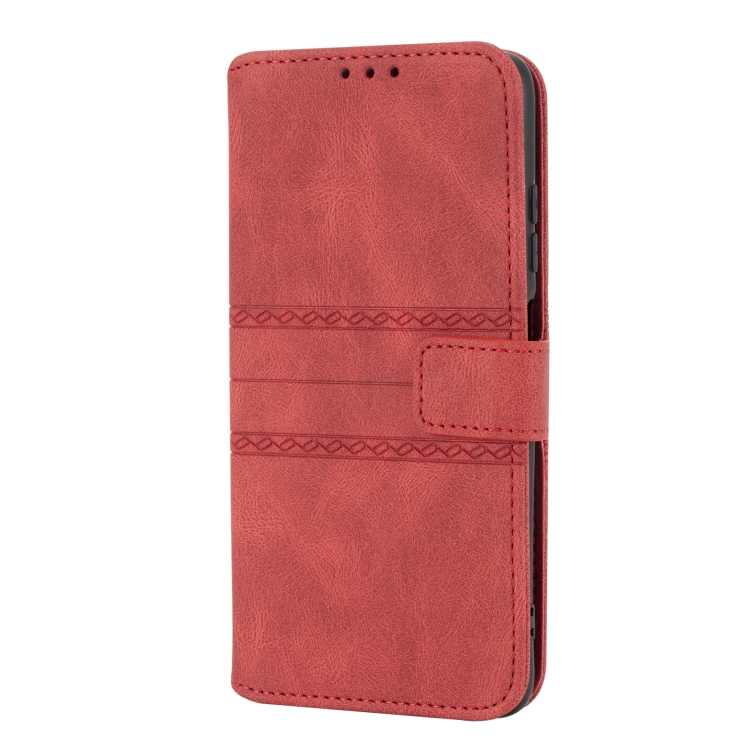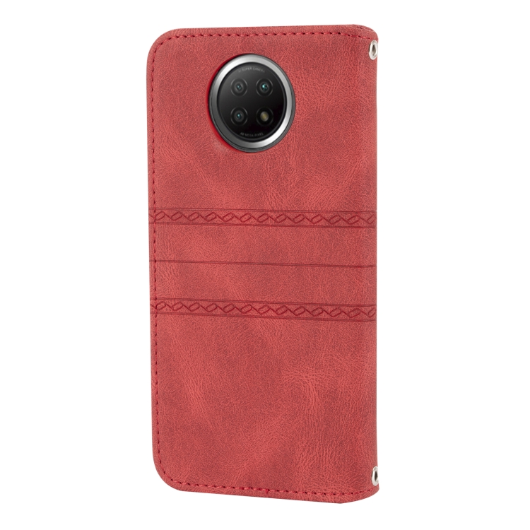 Para Xiaomi Redmi Note 9 5G Hebilla Magnética de Rayas En Relieve Pu + TPU Funda de Cuero Horizontal Flip con Soporte y Ranura para Tarjetas y Marco de Fotos y Sling (Rojo)