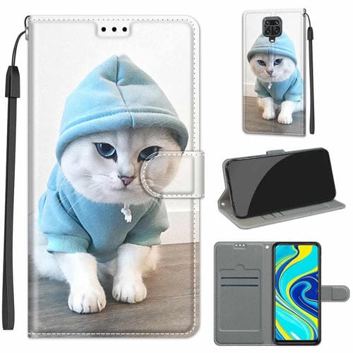 Para Xiaomi Redmi Note 9S / 9 Pro Voltaje Dibujo de Color Magnético Cierre Magnético Flip Pu Funda de Cuero con Soporte y Ranuras de Tarjetas (C15 Suéter Azul Blanco Gato)