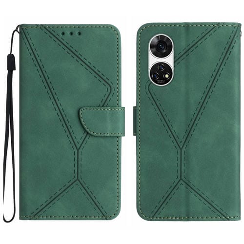 Funda para ZTE Anshin Family A303Zt de Cuero con Costuras en Relieve (Verde)