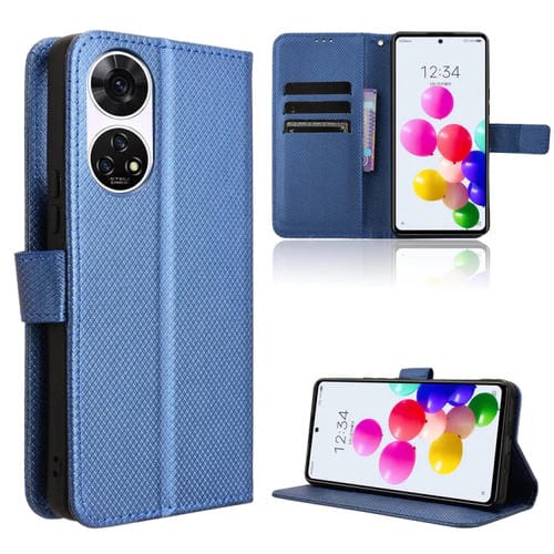 Funda de Cuero para ZTE Anshin Family con Textura de Diamante (Azul)