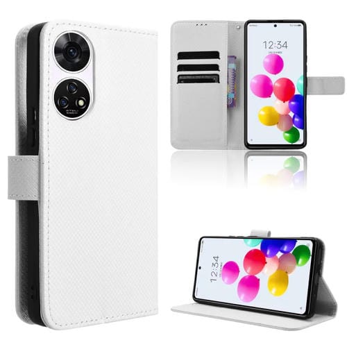 Funda de Cuero para ZTE Anshin Family con Textura de Diamante (Blanco)