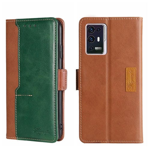 Caja de Teléfono de Cuero para ZTE Axon 30 Pro con Hebilla Lateral (Marrón Claro + Verde)