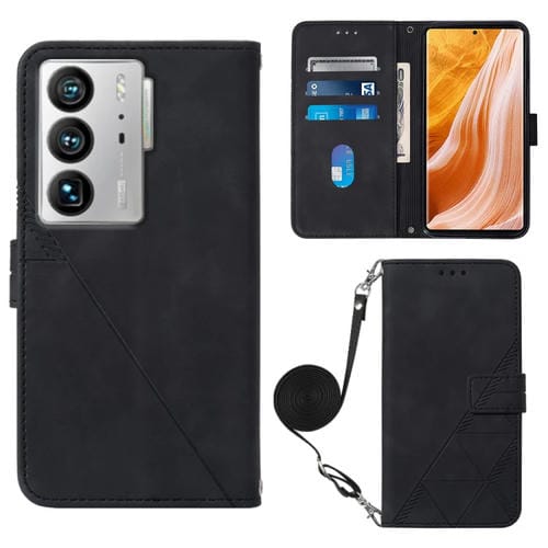 Funda de Cuero con Tapa para ZTE Axon 40 Ultra Crossbody 3D (Negro)