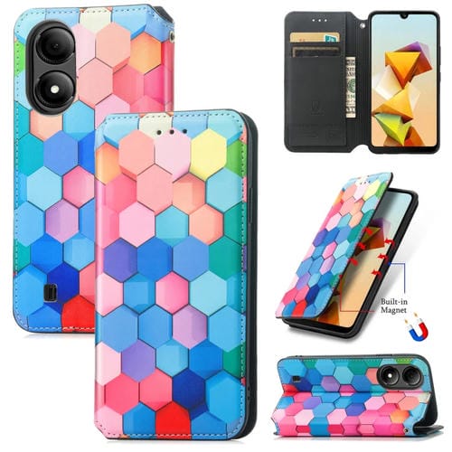 Funda de Cuero Magnética Caseneo para ZTE Blade A33S (Cubo Colorido)
