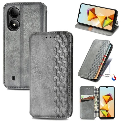 Funda de Cuero Magnético para ZTE Blade A33S Cubic Grid (Gris)