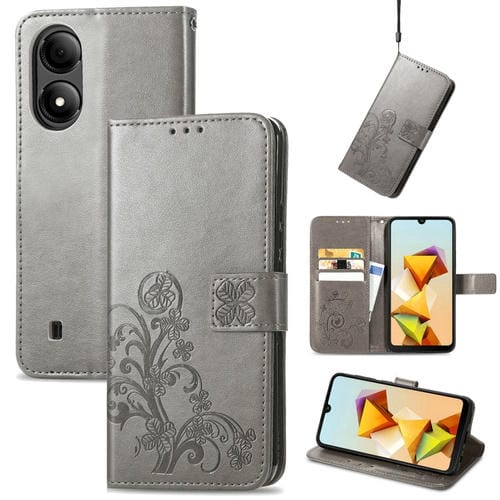 Funda para ZTE Blade A33S Cuero Repujado con Cierre de Cuatro Hojas (Marrón)