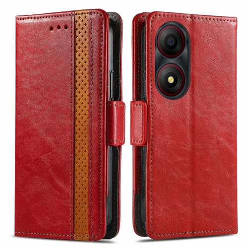Funda de Cuero Caseneo Splicing para ZTE Blade A34 con Hebilla Magnética Dual (Rojo)