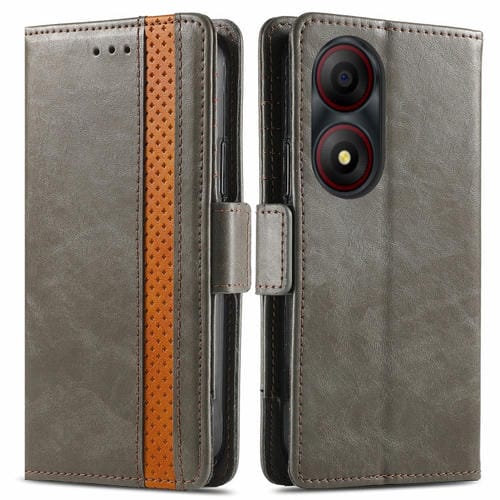 Funda de Cuero Caseneo Splicing para ZTE Blade A34 con Hebilla Magnética Dual (Gris)