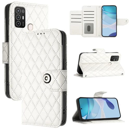 Pour ZTE Blade A52 Étui en cuir à rabat à texture rhombique avec lanière (blanc)