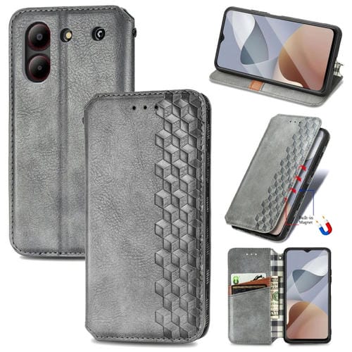 Funda de Cuero Magnético para ZTE Blade A54 Cubic Grid (Gris)
