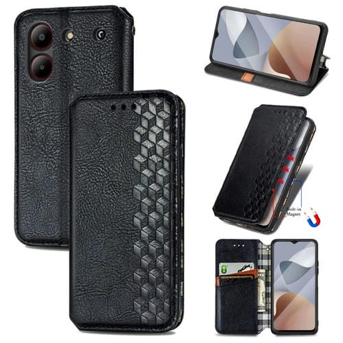 Funda de Cuero Magnético para ZTE Blade A54 Cubic Grid (Negro)