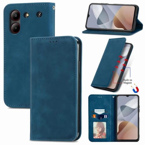 Funda de Cuero Magnética para ZTE Blade A54 con Sensación de Piel Retro (Azul)
