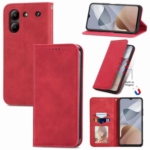 Funda de Cuero Magnética para ZTE Blade A54 con Sensación de Piel Retro (Rojo)