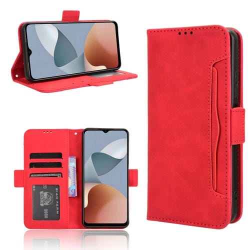 Funda de cuero para ZTE Blade A54 Skin Feel con textura becerro y ranuras para tarjetas (Rojo)