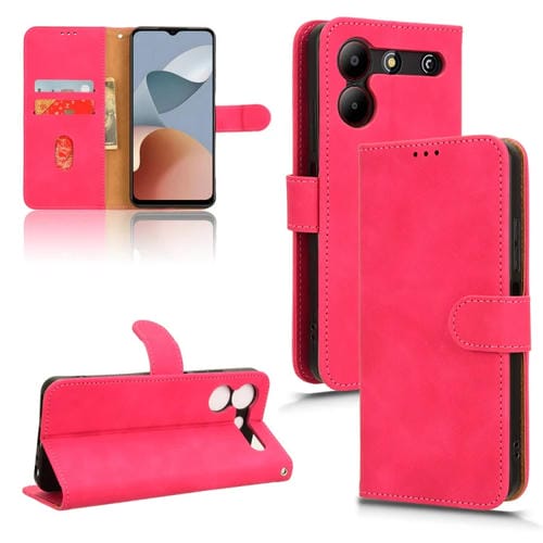 Funda de Cuero con Tapa Magnética para ZTE Blade A54 Skin Feel (Rojo Rosa)