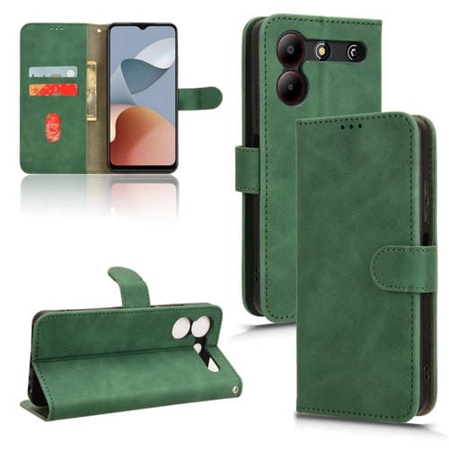Funda de Cuero Skin Feel para ZTE Blade A54 con Tapa Magnética (Verde)