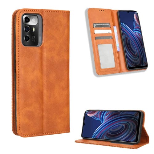 Funda de Cuero para ZTE Blade A72 5G con Hebilla Magnética y Textura Retro (Marrón)