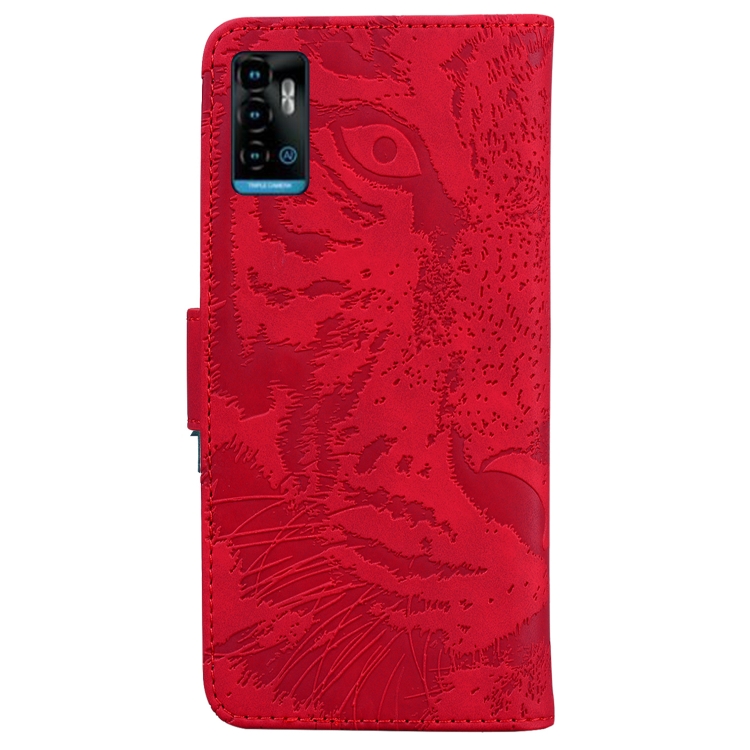 Para ZTE Blade A72 / V40 VITA Tiger Patrón de grabación en relieve Horizontal Flip de cuero funda (roja)