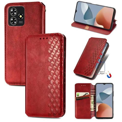 Funda de Cuero Magnético para ZTE Blade A73 4G Cubic Grid (Rojo)