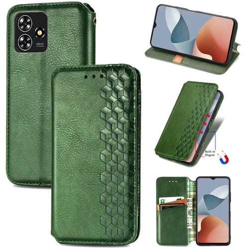Funda de Cuero Magnético para ZTE Blade A73 4G Cubic Grid (Verde)