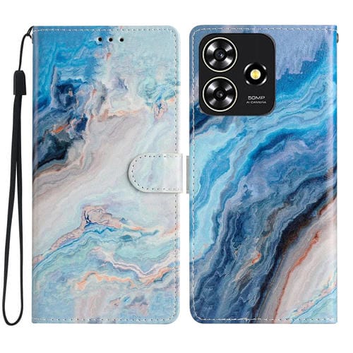 Funda de Cuero para ZTE Blade A73 4G con Dibujo Coloreado Mármol Azul