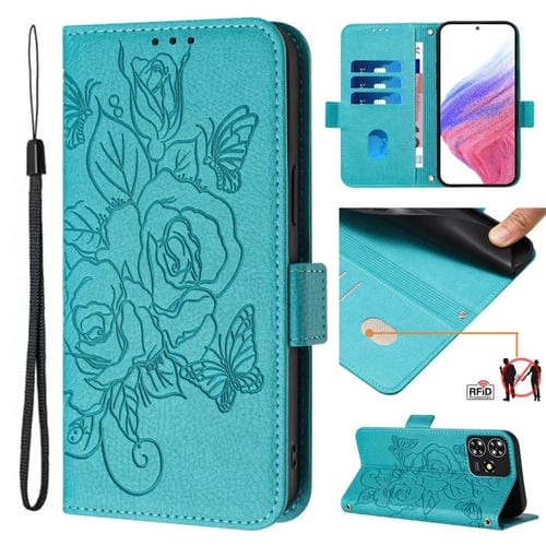 Pour ZTE Blade A73 4G Étui de téléphone en cuir antivol RFID en relief rose (bleu clair)