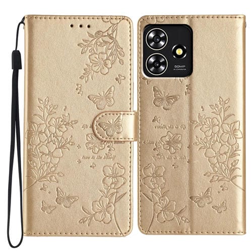 Pour ZTE Blade A73 4G Love Flower & Butterfly Étui de téléphone en cuir gaufré (Or)