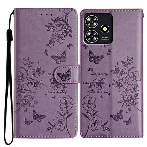 Pour ZTE Blade A73 4G Love Flower & Butterfly Étui de téléphone en cuir gaufré (Violet)