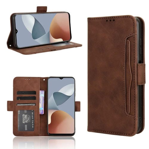Funda de Cuero para ZTE Blade A73 4G y V50 Design 4G con Textura Becerro y Ranuras para Tarjetas (Marrón)